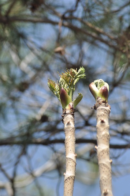 두릅의 줄기는 무성한 가시가 있으며 엷은 갈색 털로 덮여 있습니다.