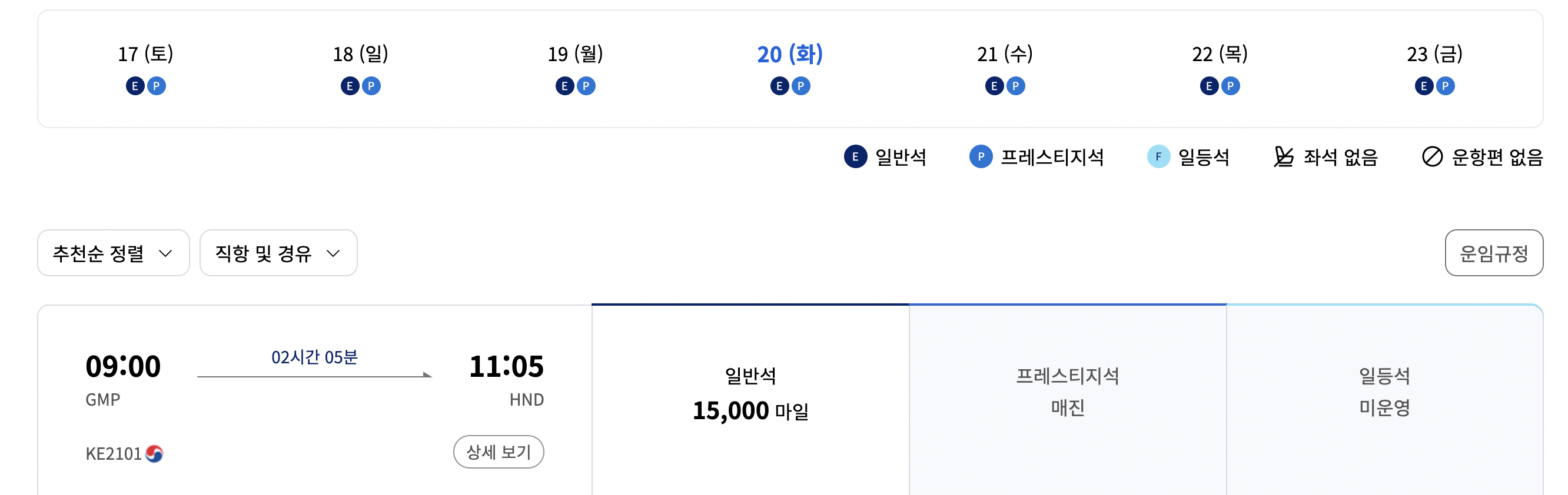 저는 도쿄로 보고 있는데 일반석 15,000마일 보이시나요?