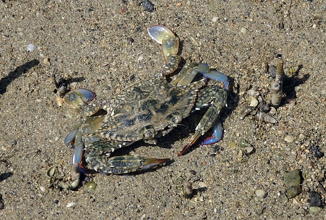이탈리아 푸른 꽃게는 중간 크기의 게로, 꽤 큰 게도 발견됩니다.