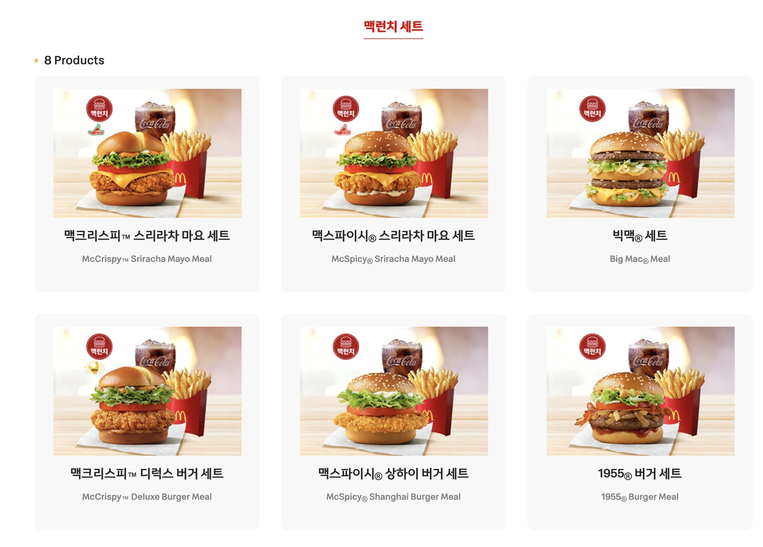 맥크리스피 스리라치 마요는 단품으로 7,800원이고,