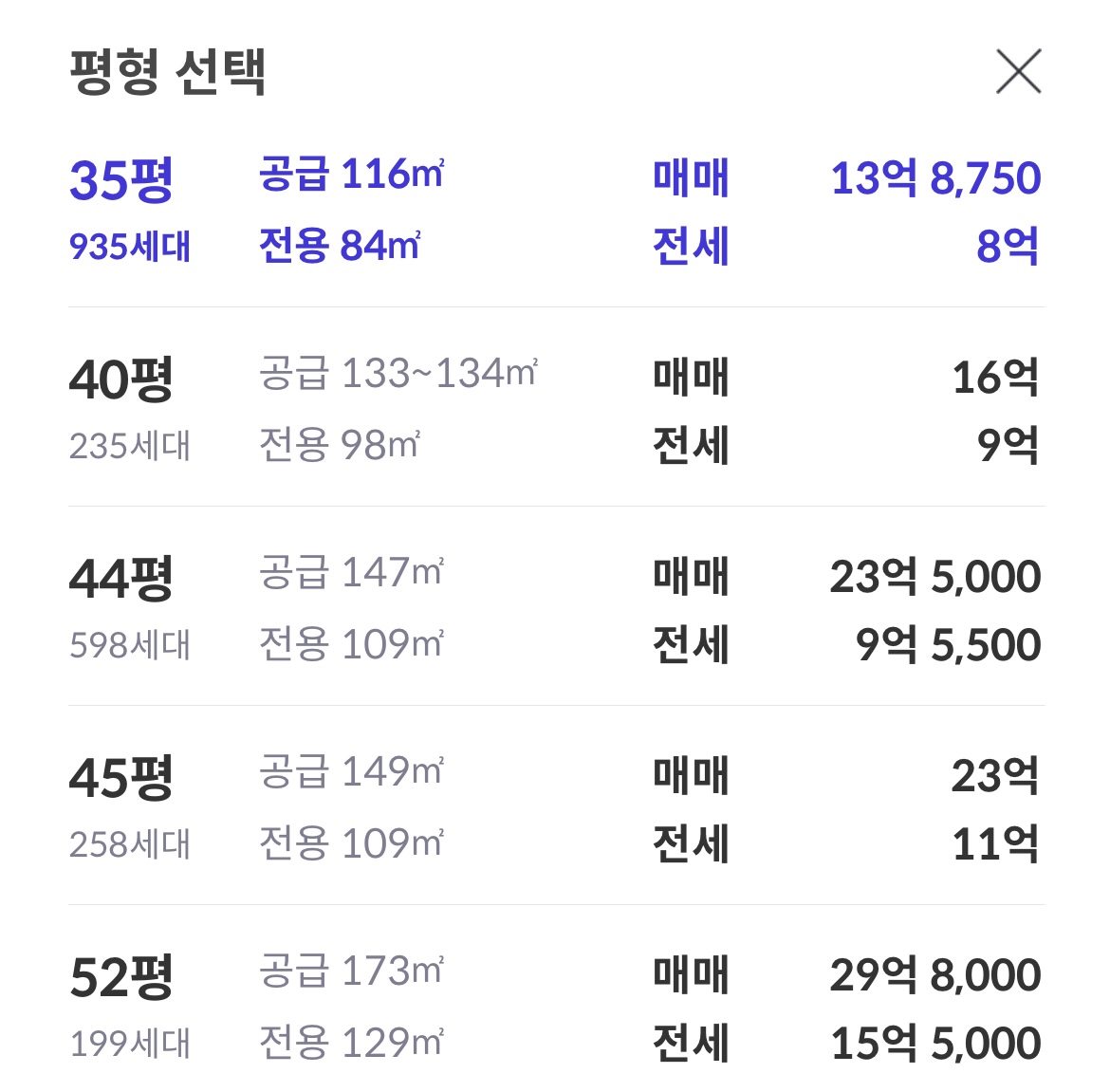 총 2,231세대 중에 199세대가 29억 8,0000만원 어마어마 합니다.
