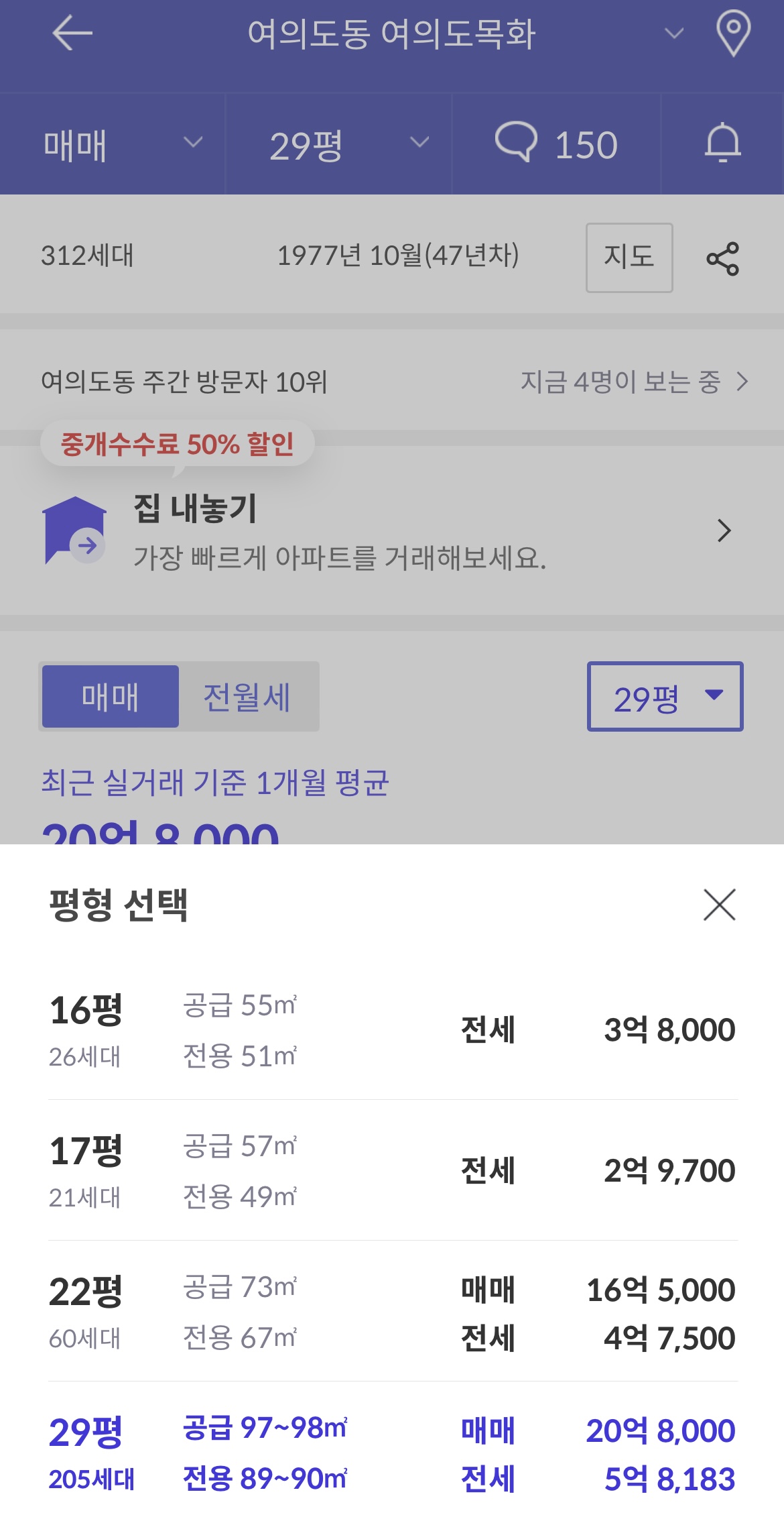 16평 17평은 매매 가격이 없습니다. 즉 나온 물건이 없다는 겁니다.