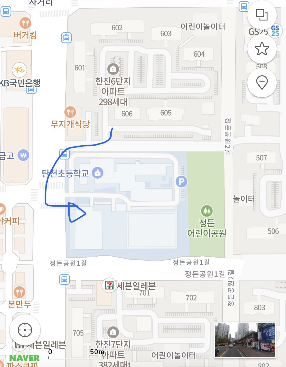 오늘다녀온 한진아파트 같은 경우도 바로 옆에 초등학교가 있습니다.