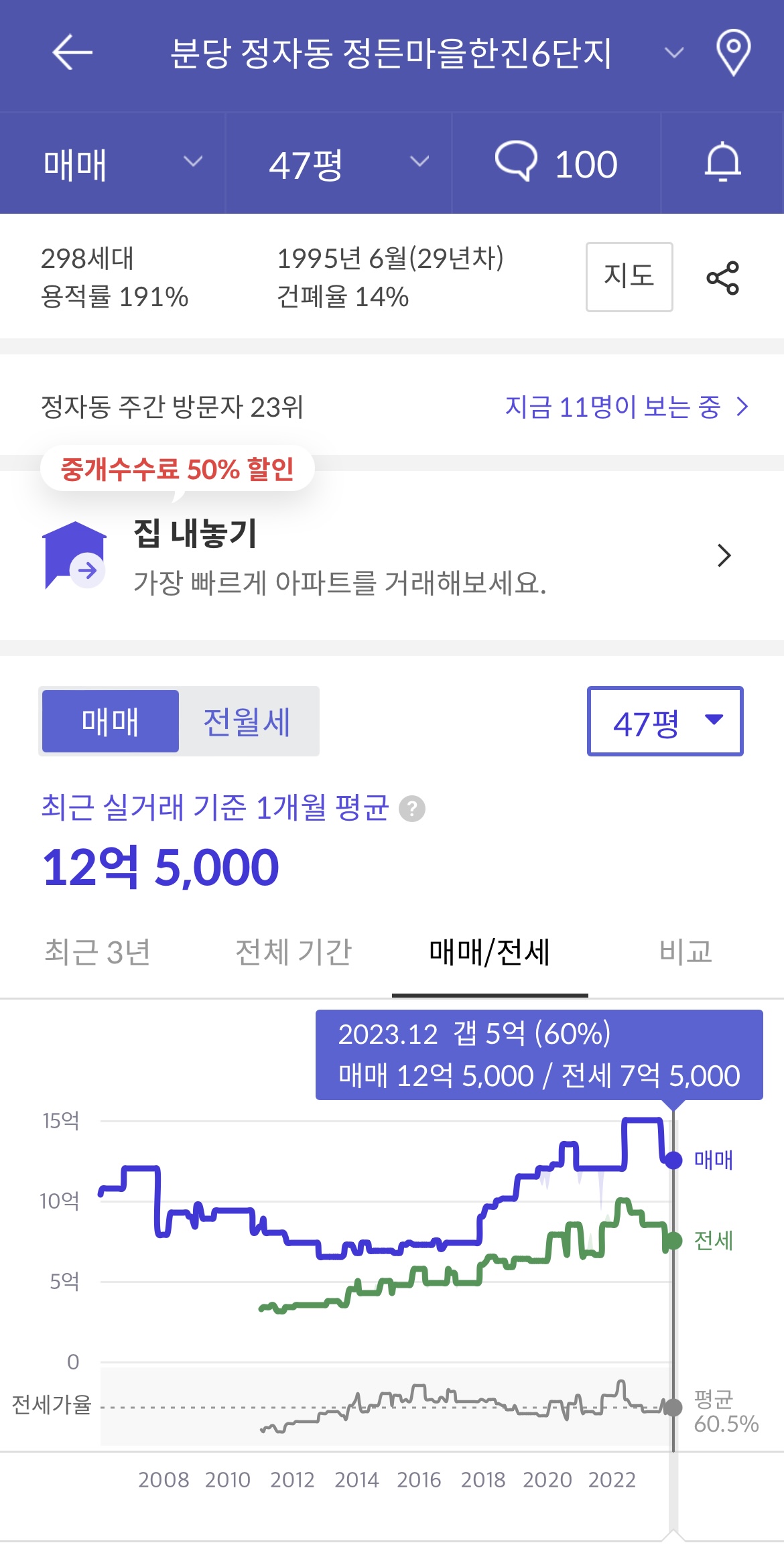 47평 기준으로 보았을때 매매가격은 12억정도이며