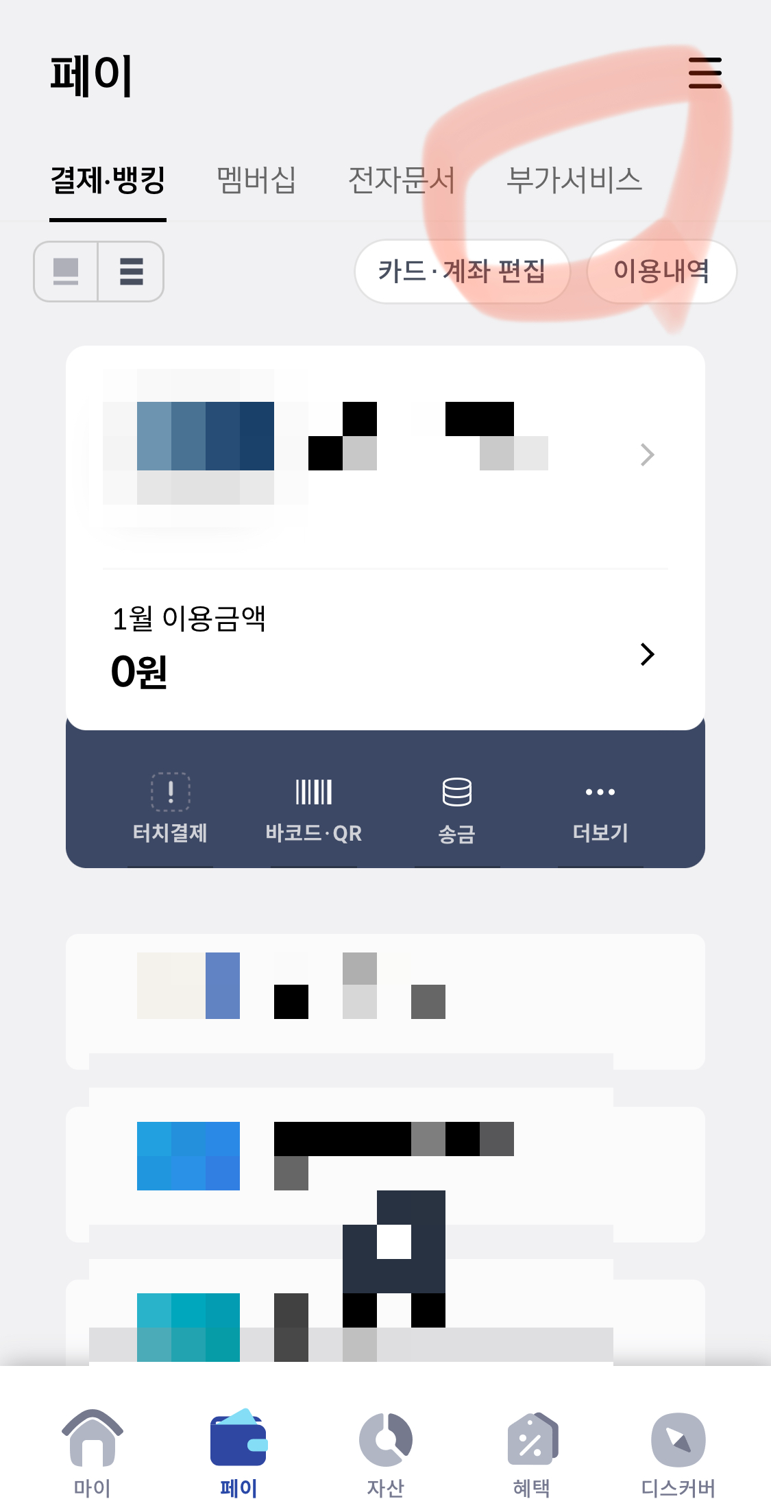 하단의 '페이'를 터치해주세요.