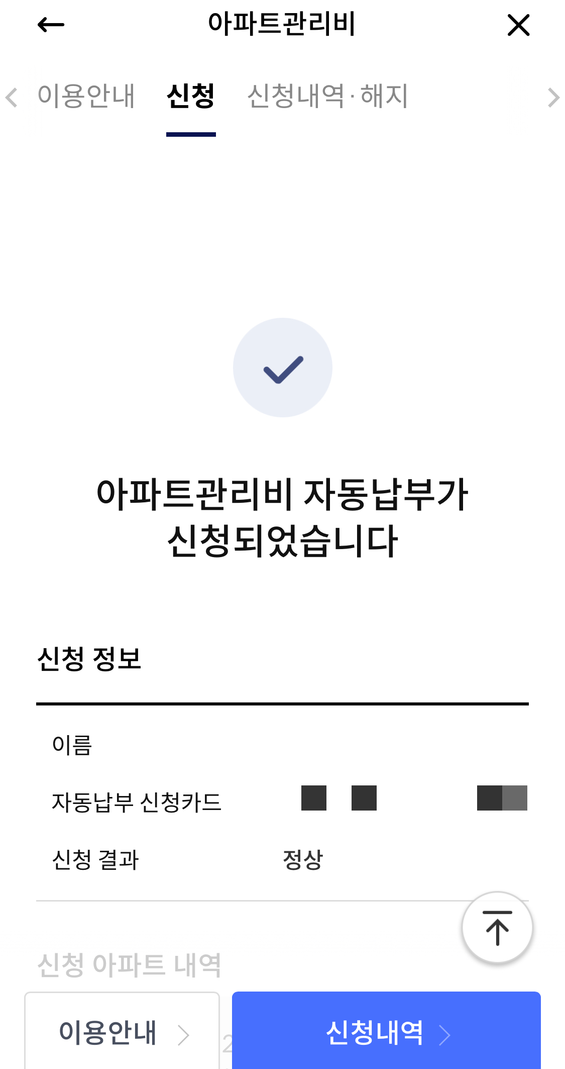 이렇게 8단계를 거치면 아파트 관리비 자동납부가 신청되었습니다.