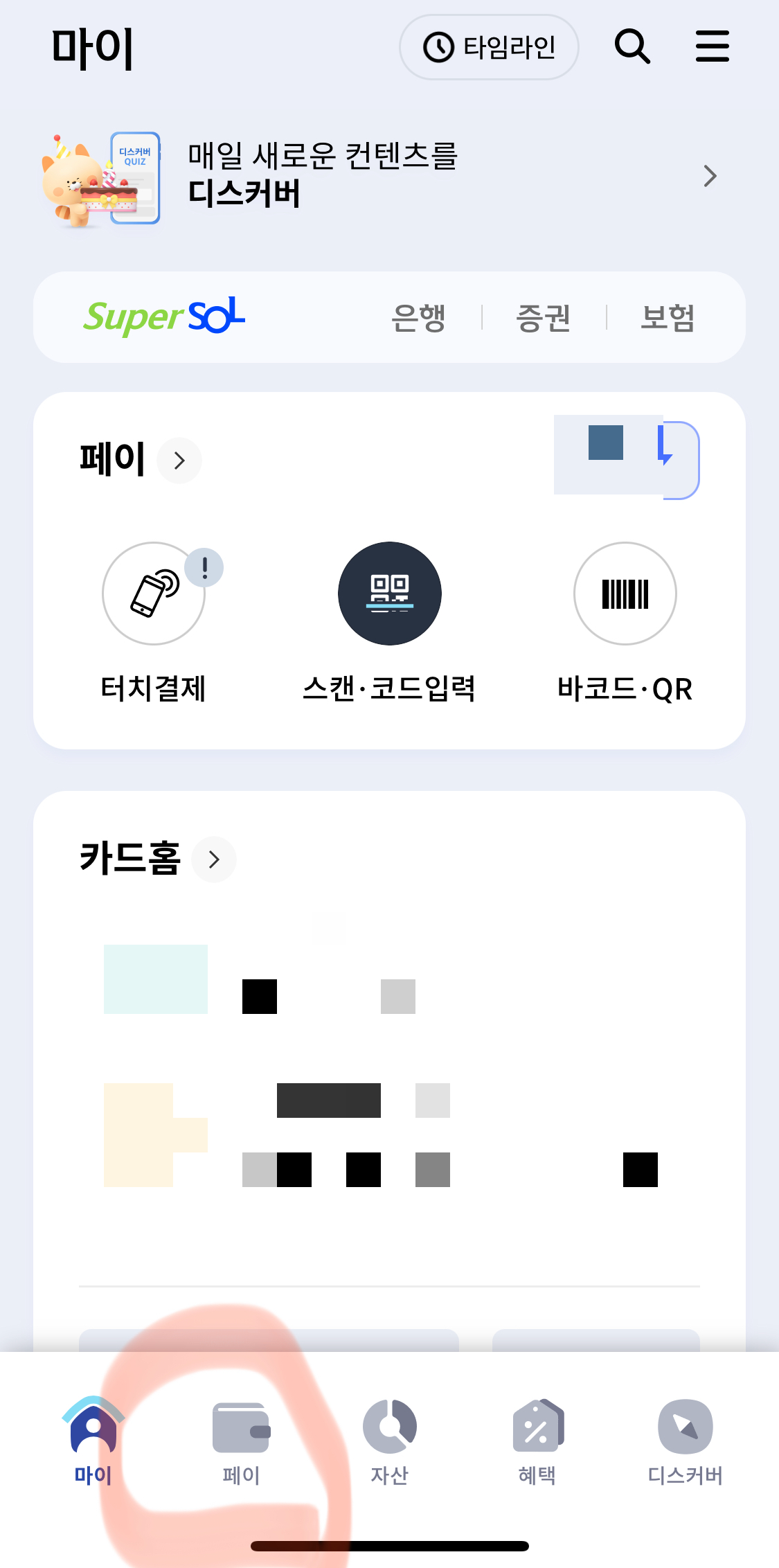 1. 신한카드 어플 (신한 쏠 페이) 들어가주세요.