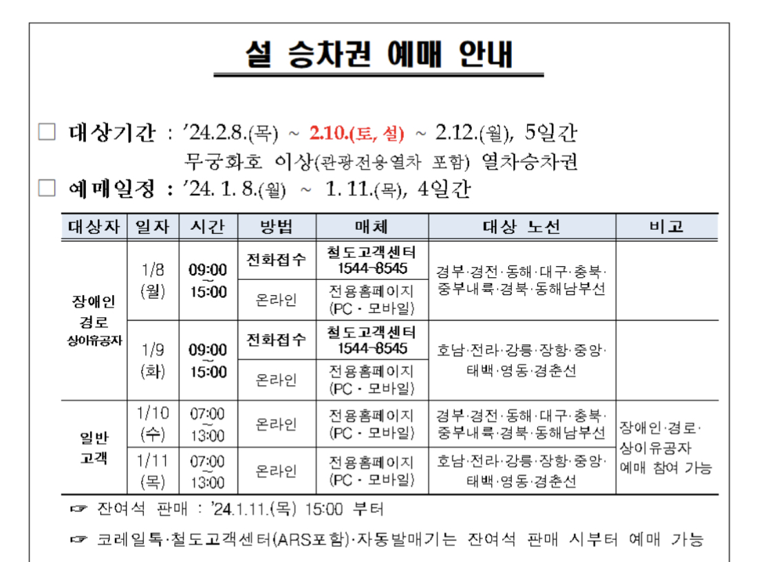 설 승차권 예매 안내