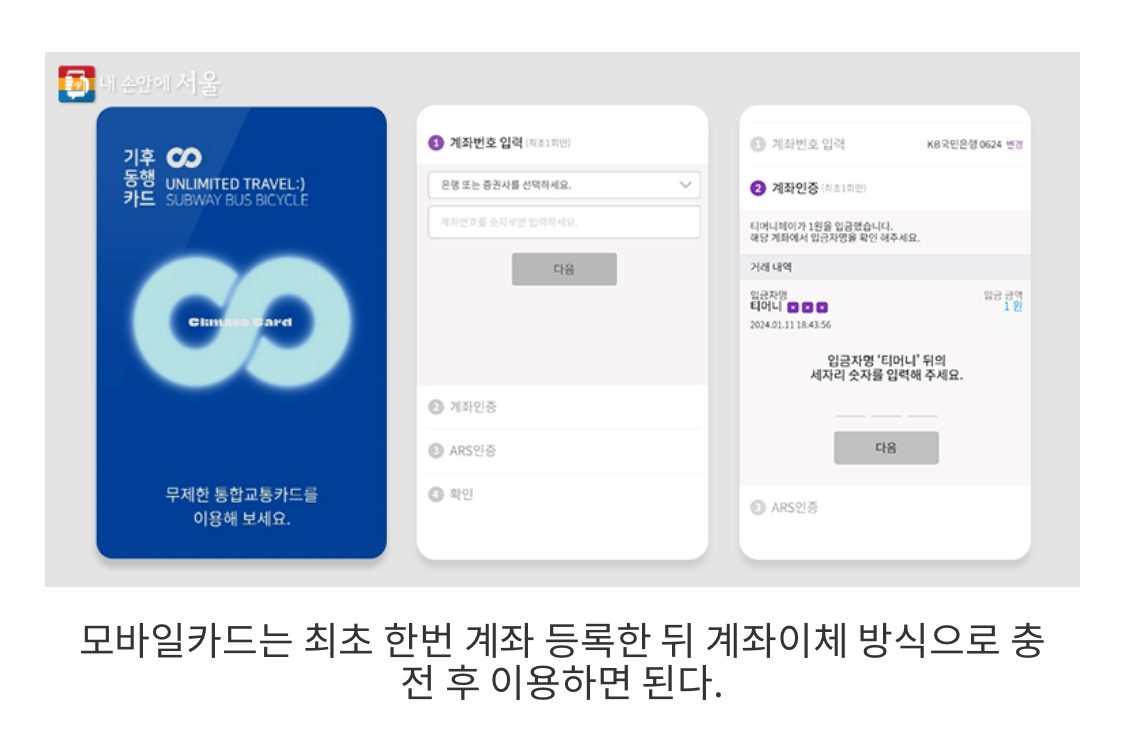 *실물카드 소지시 - 카드 뒷면 QR코드 접속해 '기후동행카드' 회원가입 미리 해야합니다.