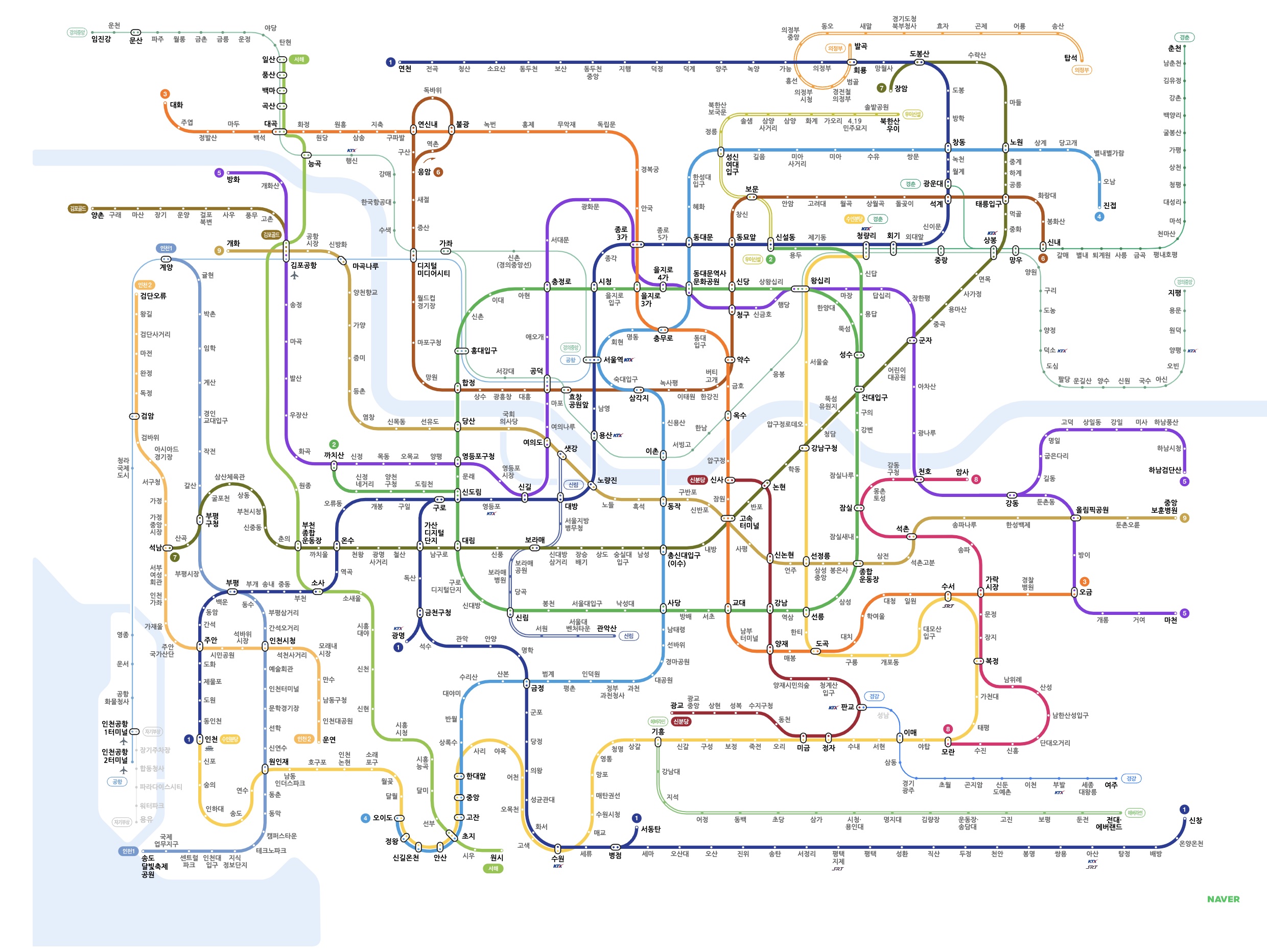 2,6,8,9호선, 우이신설선, 신림선 전구간