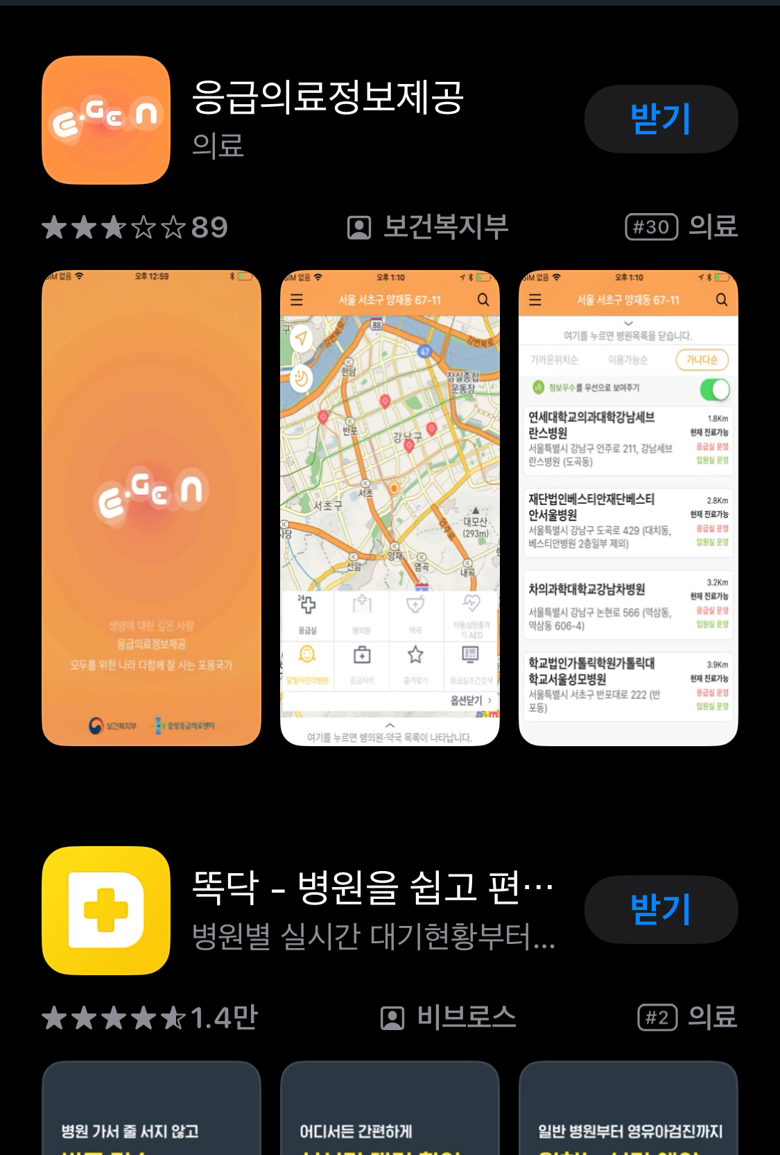 1. ‘응급의료정보제공’ 어플을 받아주세요.