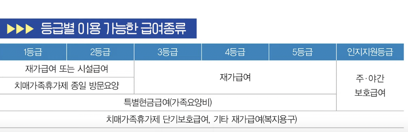 노인장기요양급여 등급에 따라 가능한 급여 종류가 다르고,
