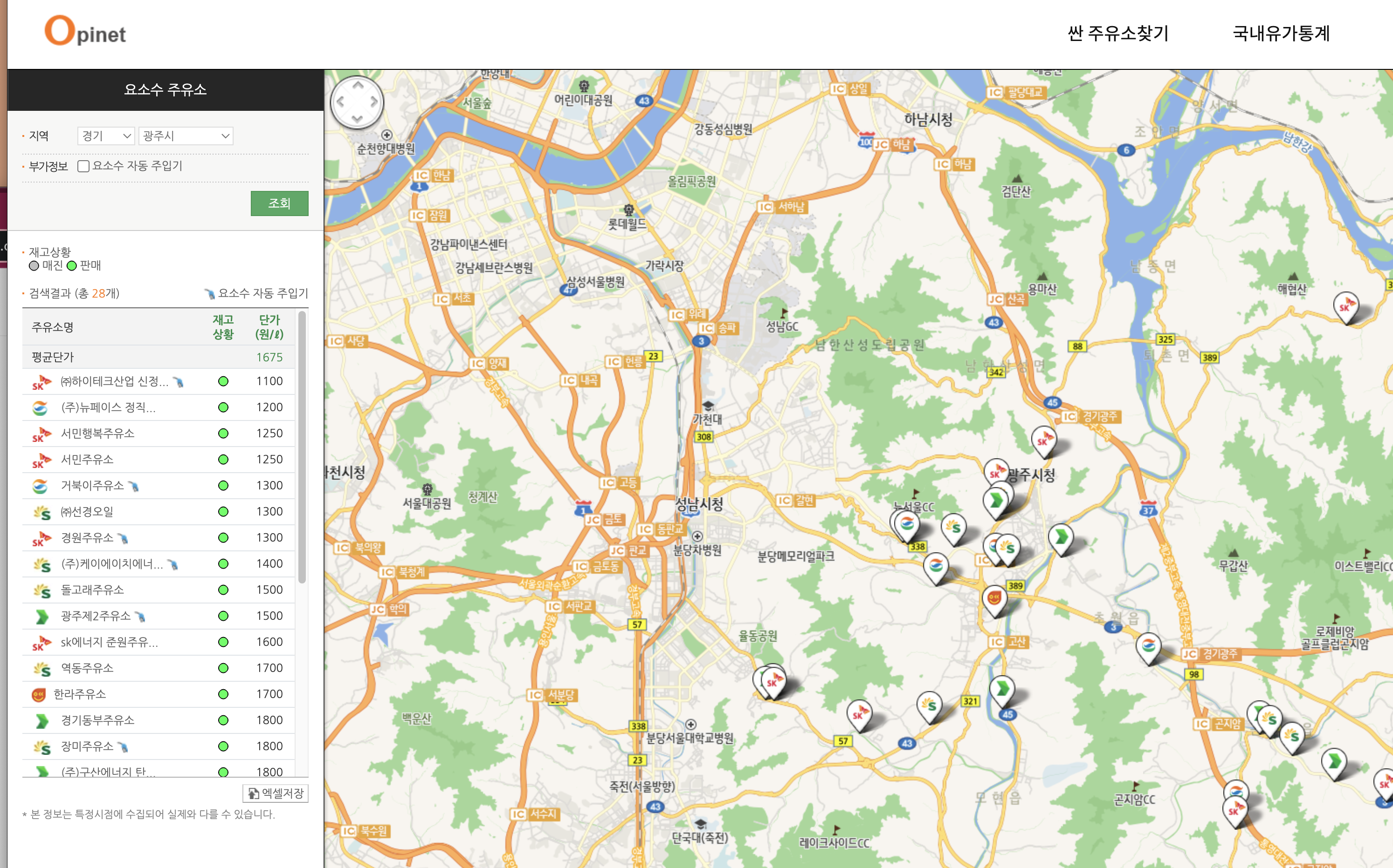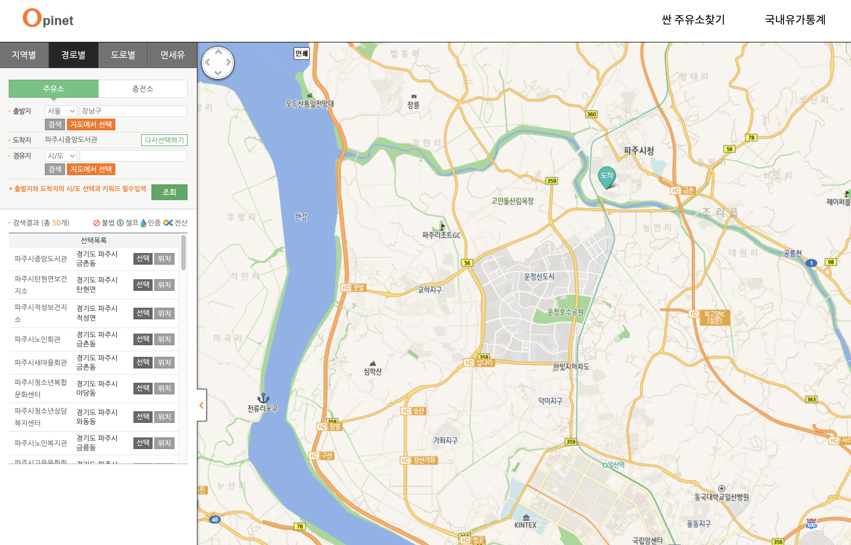 실제로 자신이 출발할 위치에서, 도착하는 곳까지 그 중간에 어떤 주유소가 가장 저렴한지 알 수 있는 것이죠.