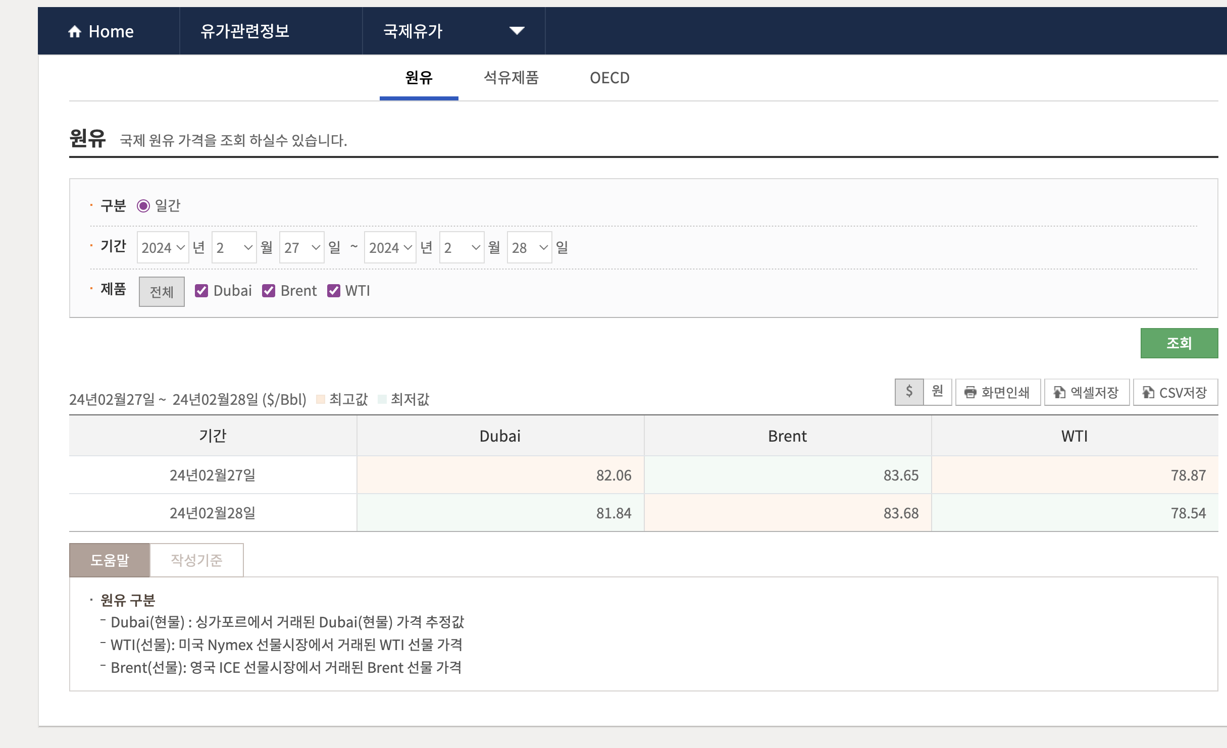 국제유가 정보도, 두바이유 브렌트유 wti까지 알 수 있습니다.