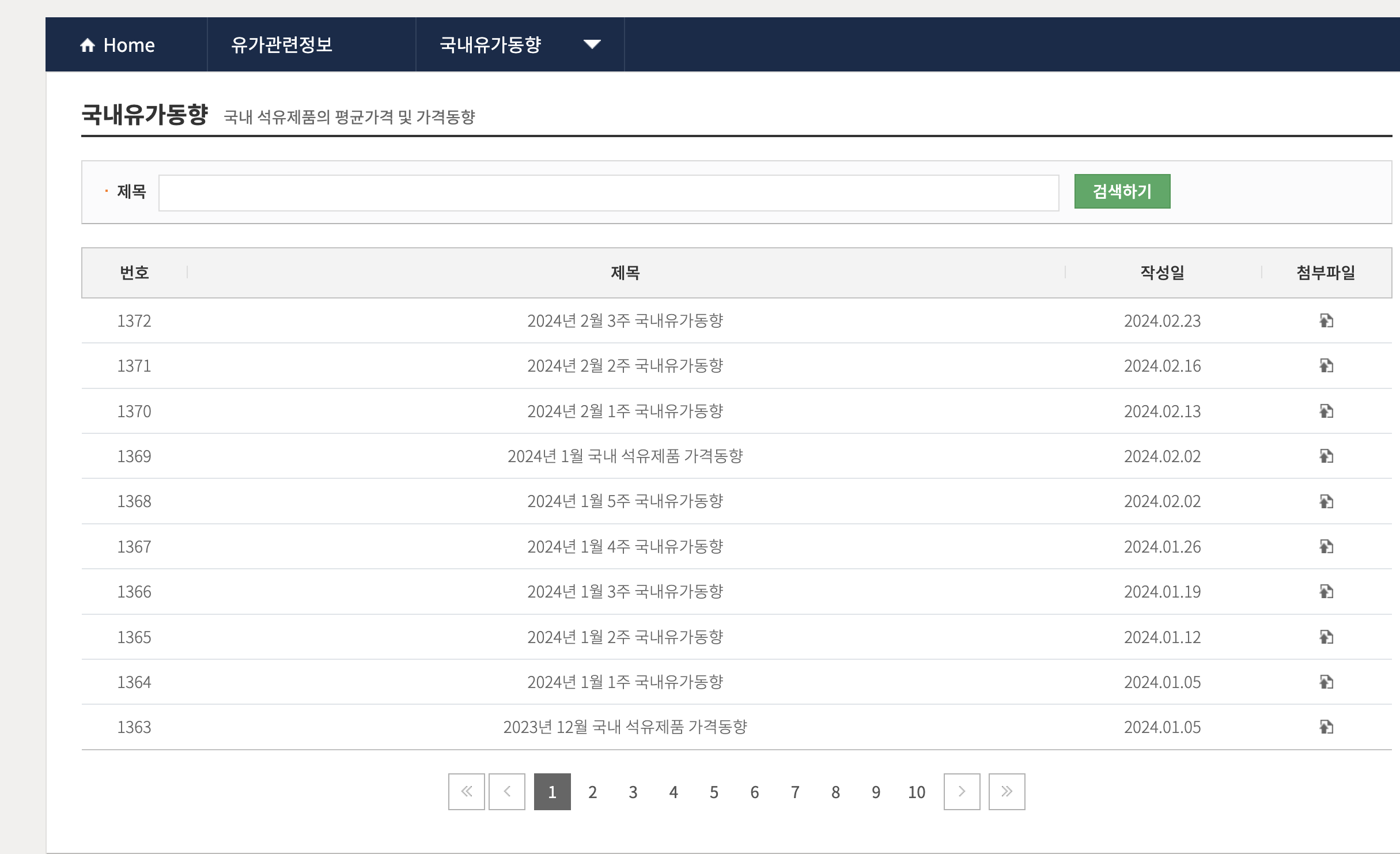 또한, 국내 유가 동향이 매주 한번씩 업데이트됩니다.