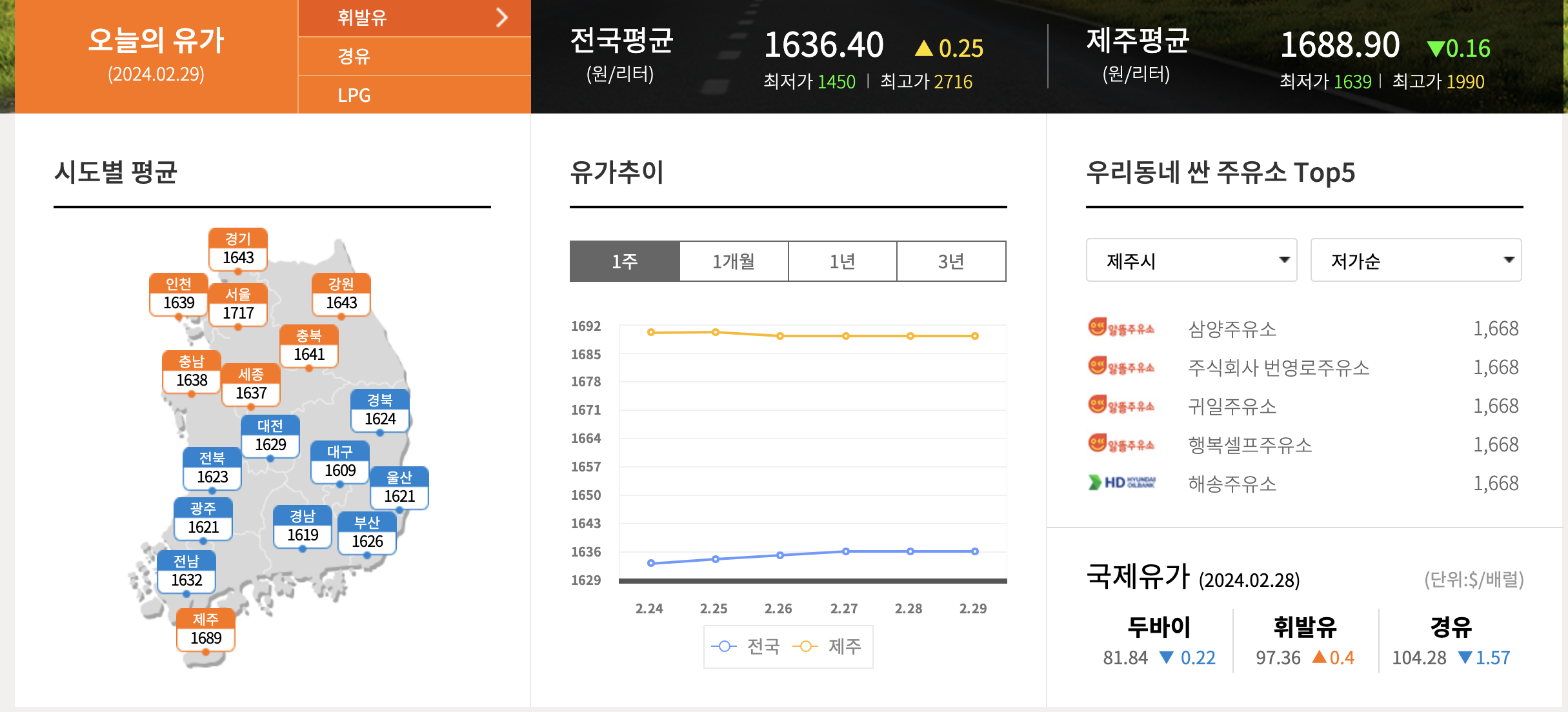 본격적으로 주유소 가격을 알아보겠습니다.