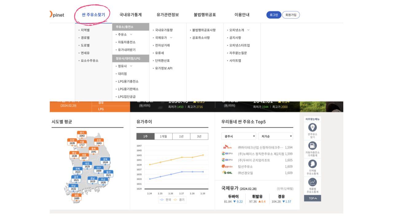 싼 주유소 찾기 오피넷