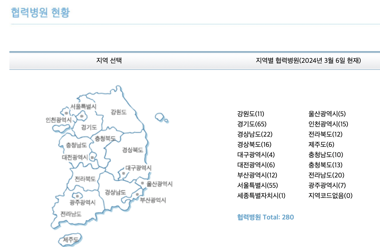 3월 6일 현재 총 280개의 협력병원이 있다고 나옵니다.
