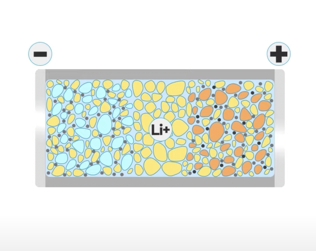 전통적인 리튬 이온 배터리는 좌우로 양극, 음극이 있고, 가운데에 분리막이 있습니다.